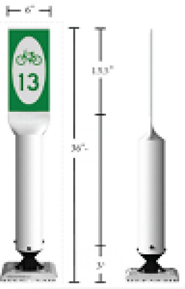 As with all of our Post products, our Bike Lane/Green Lane markers utilize our proven reactive spring assembly, interchangable with all Systems bases,including our high-performance materilas. All post are Smooth Edges and Rounded Contours is cyclist-friendly with its gently sloped edges and low profile. Glass Element Technology Reflector – Standard glass element reflectors offer excellent off-angle, retro-reflectivity and superior durability.
